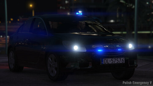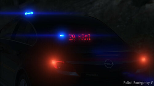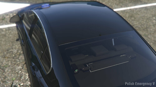 The vehicle has a working matrix board, 5 liveries (plates) and every colour, which is used by polish police. Inside the car you can find police video recorder: screen, pilot and 2 cameras.