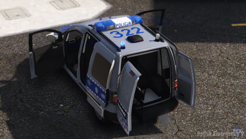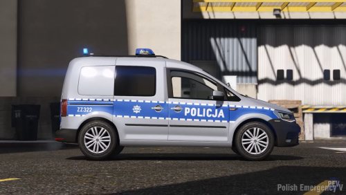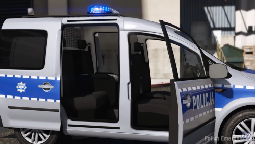 Radiowóz polskiej policji Volkswagen Caddy IV generacji. Modyfikacja zawiera 1 wersję oznakowaną.