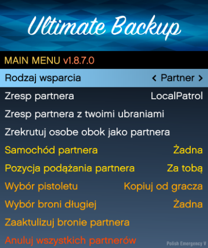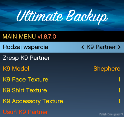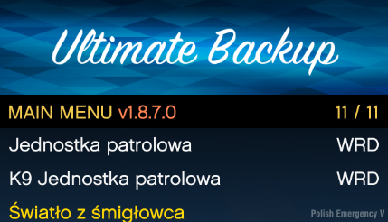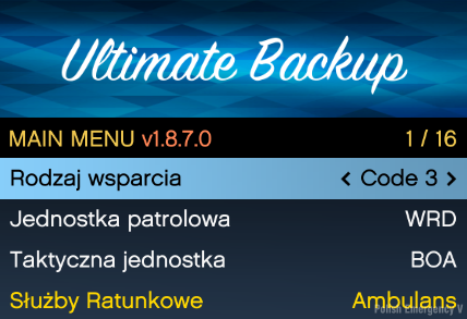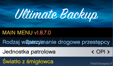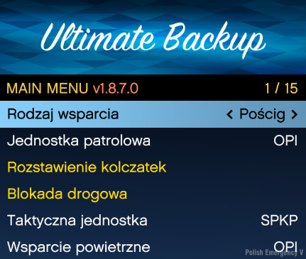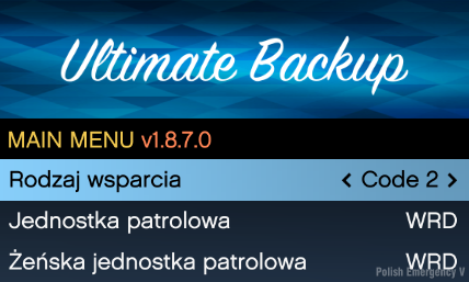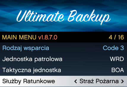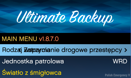 Wejdź w folder: Grand Theft Auto V\plugins\LSPDFR\UltimateBackup i następnie przerzuć pliki z folderu "Spolszczone UB" (Zamień Pliki)
