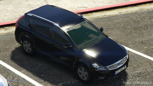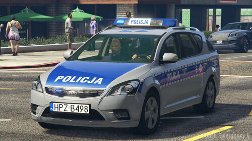 Radiowóz KIA Cee'd SW pierwszej generacji dla polskiej policji w 3 wersjach, dwie oznakowane i nieoznakowana:
