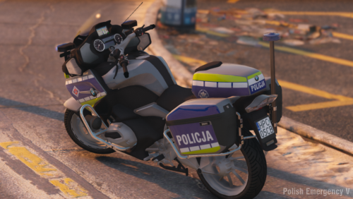Motocykl BMW R1200RT Polskiej policji. Modyfikacja zawiera 3 pojazdy: Oznakowany - oświetlenie FSV CO400 i LD400, głośnik AL-252 Nowy oznakowany- oświetlenie FSV CO400, LD400 i Nanoled, głośnik AL-252 Nieoznakowany- oświetlenie FSV Nanoled i LM400 Oznakowane wersje posiadają po 5 indywidualnych malowań z różnych miast Polski. Modele w grze: POLICEB - oznakowany POLICEB2 - nowy oznakowany POLICEB4 - nieoznakowany Obsługa świateł: J - niebieskie błyski K - czerwone błyski -
